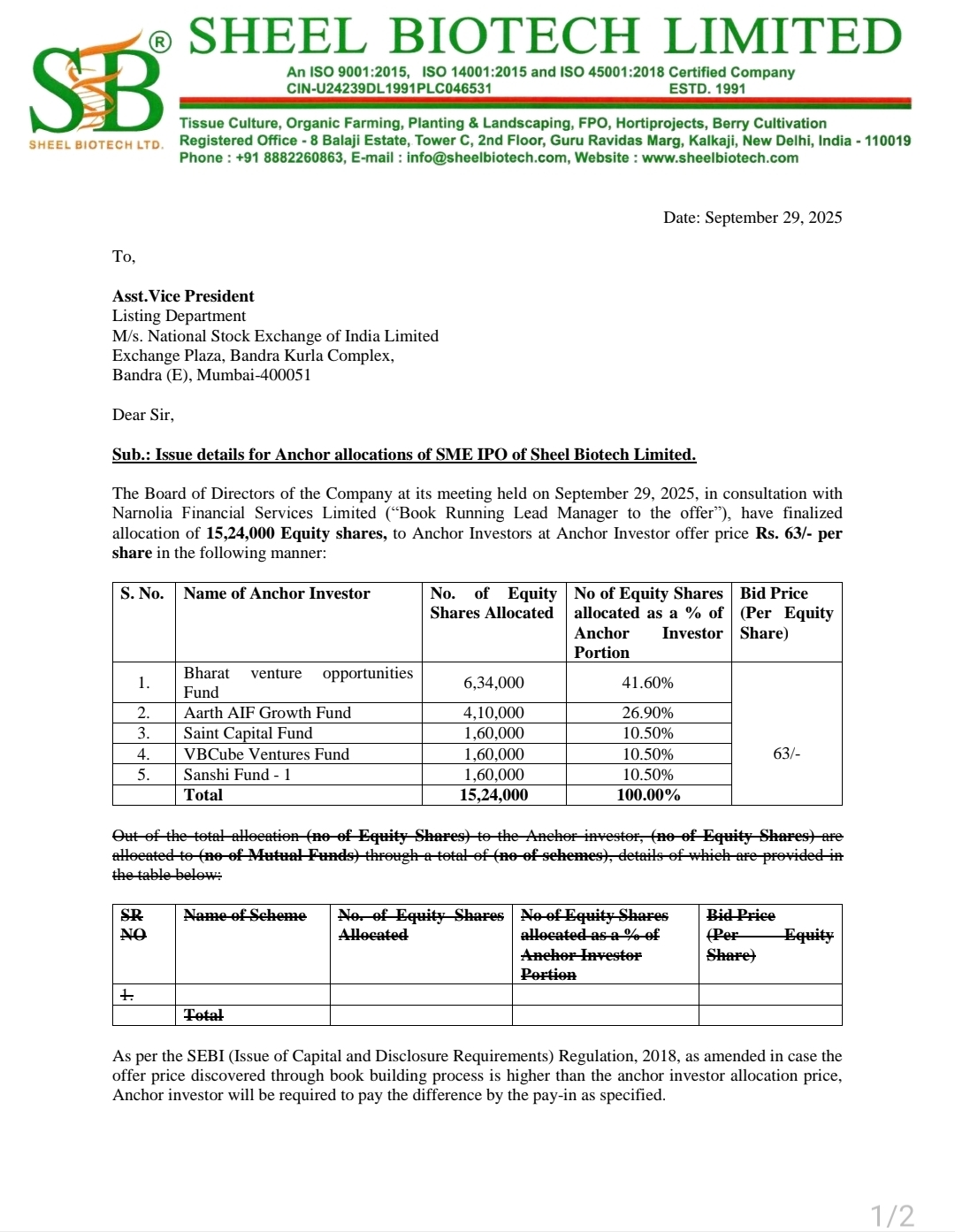 Sheel Biotech Ltd. | 56.84 | 13.59 | 7.21 |