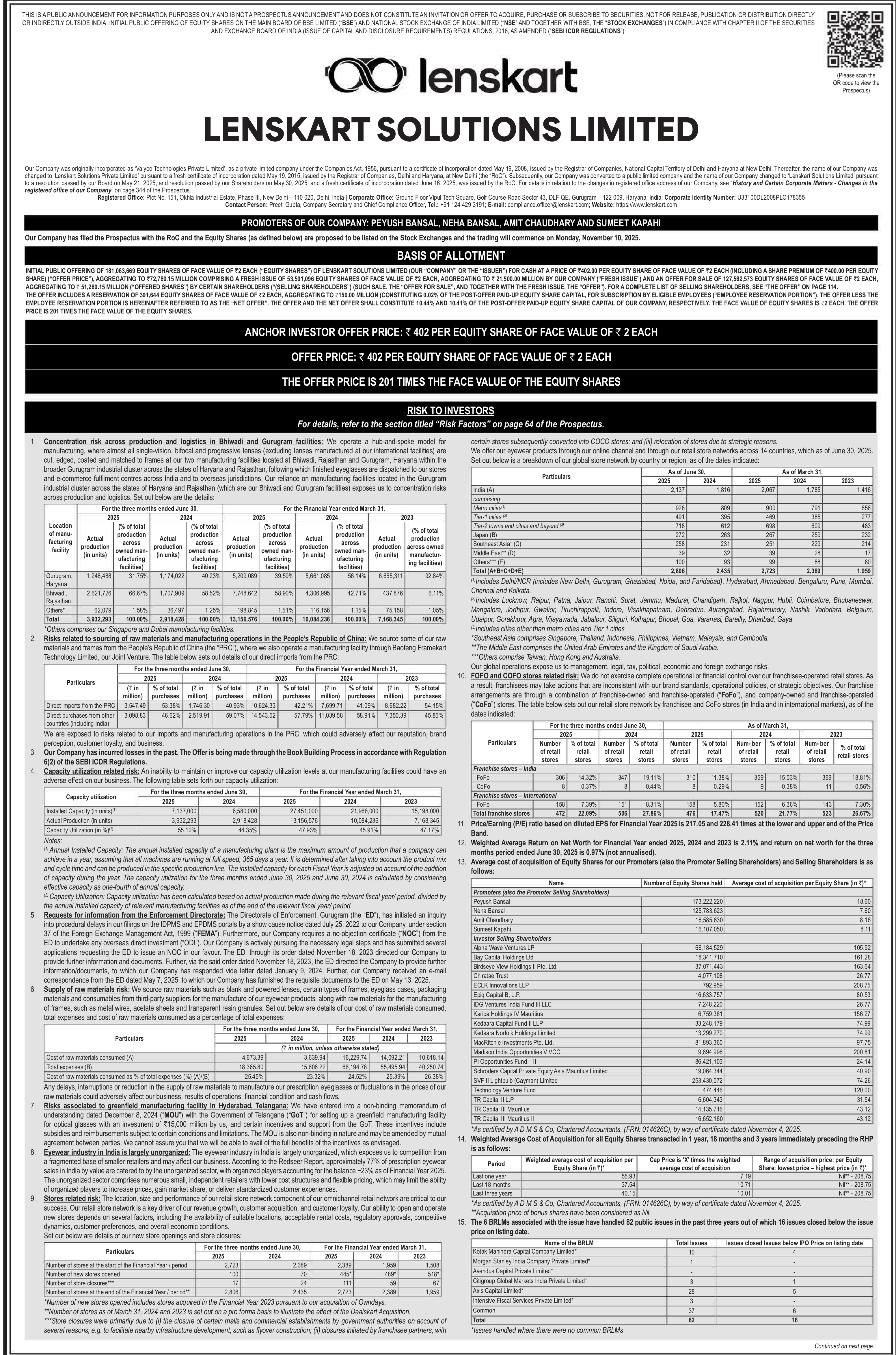 Market Position: According to the Redseer Report, Lenskart sold the highest volume of prescription eyeglasses in India during FY 2025.