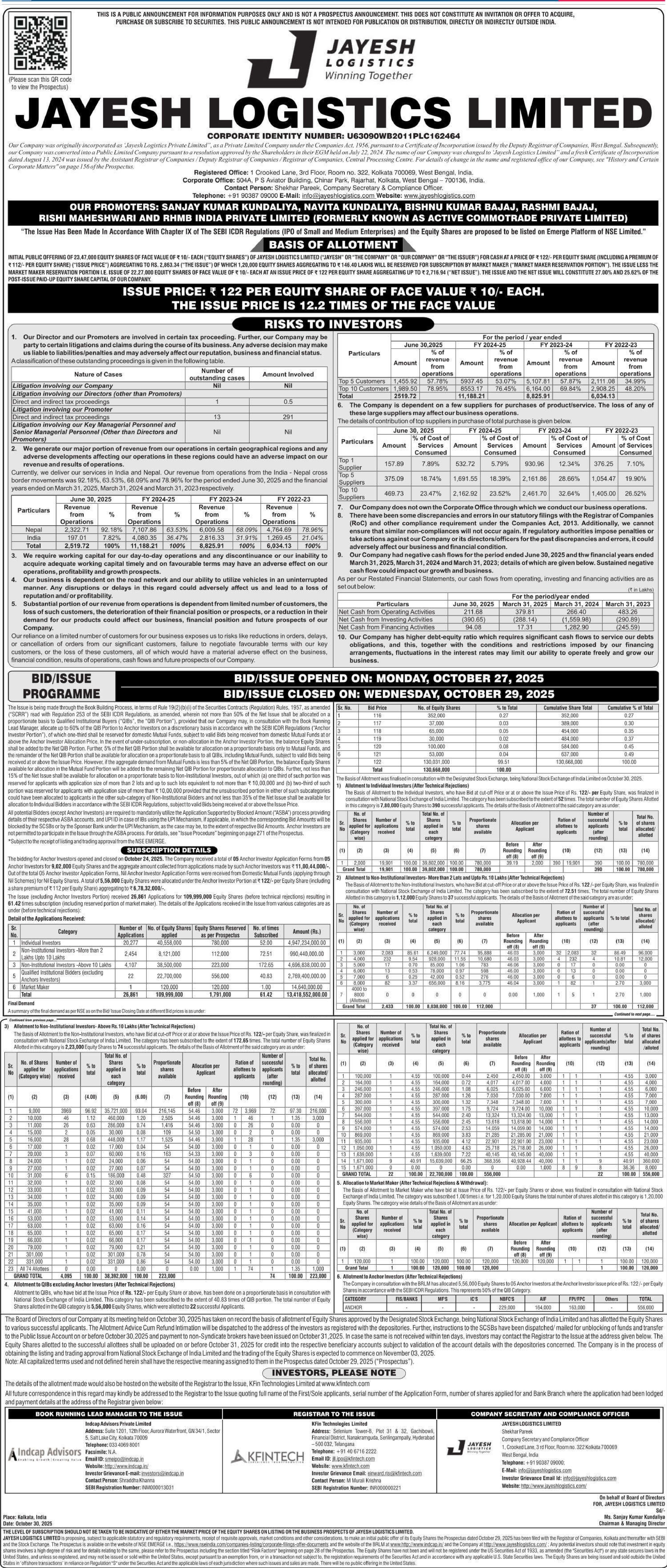 Jayesh Logistics Latest Announcements