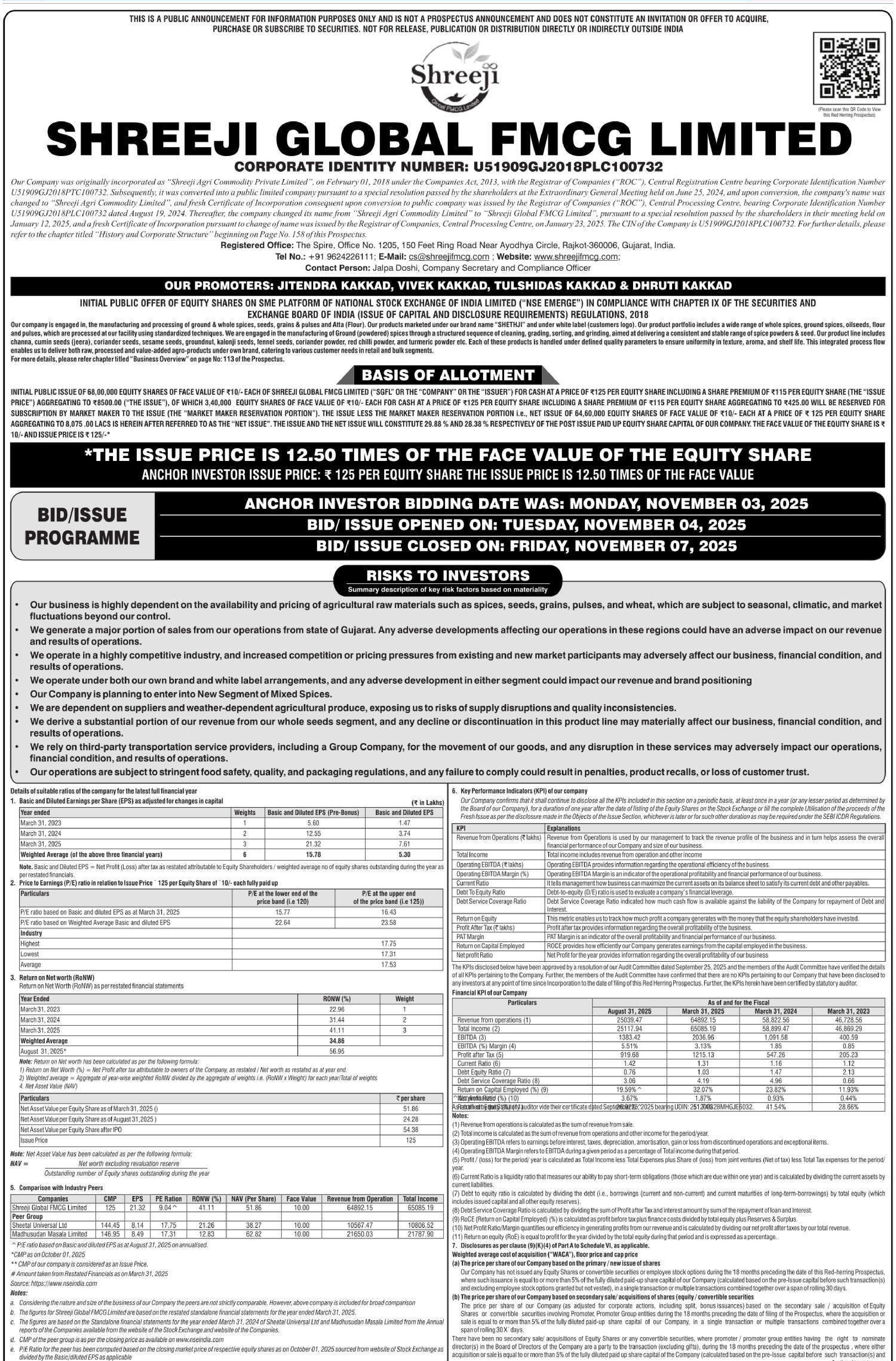 | Shreeji Global FMCG | 51.86 | 41.11 | 21.32 |