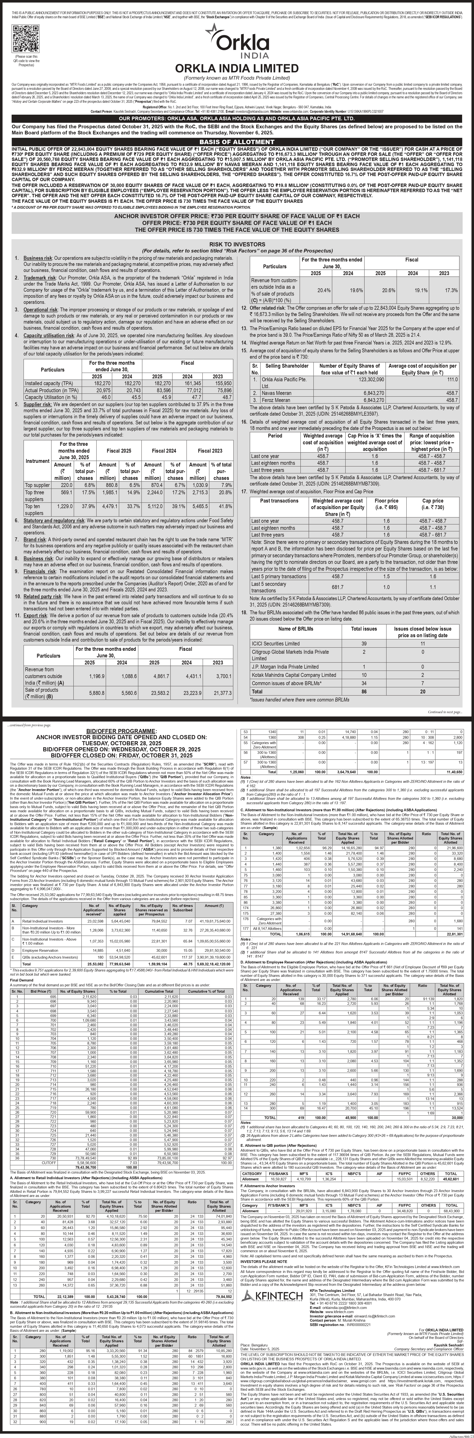 Orkla India Listing Price