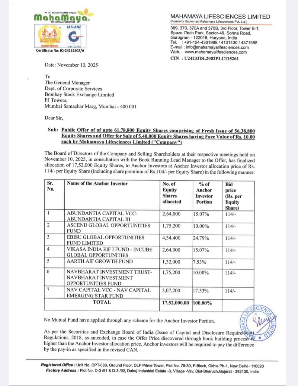 Mahamaya Lifesciences Listing Price