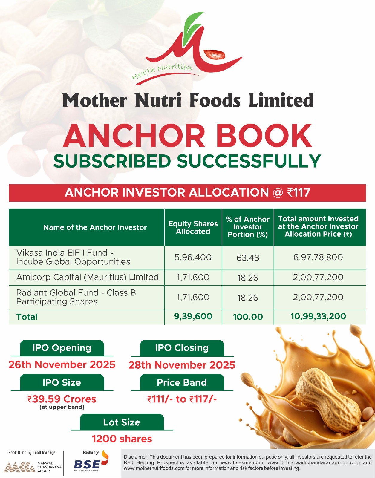 | Total Issue Size | 33,84,000 shares (aggregating up to ₹39.59 Cr) |