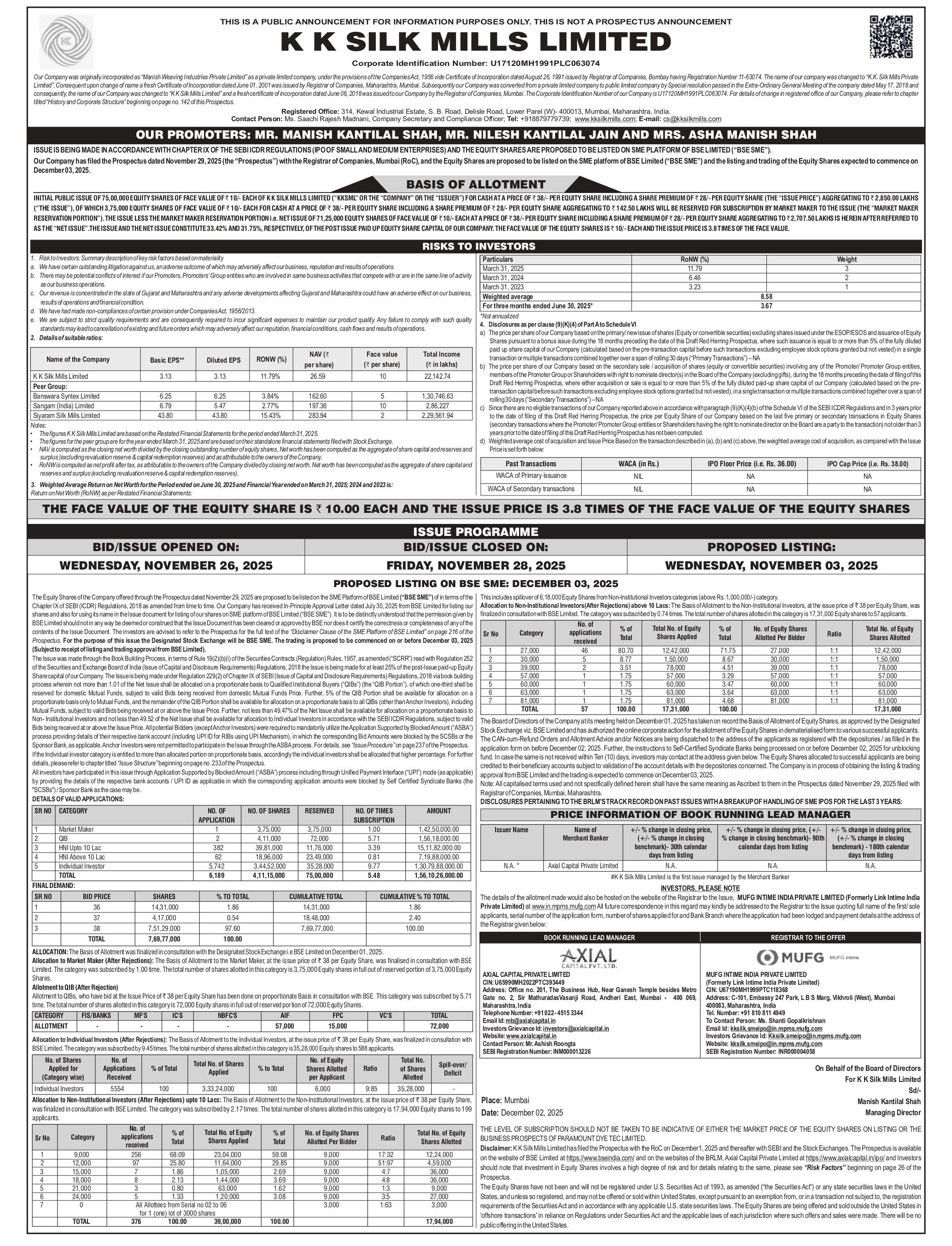 | K K Silk Mills Limited | 26.59 | 11.79 | 3.13 |