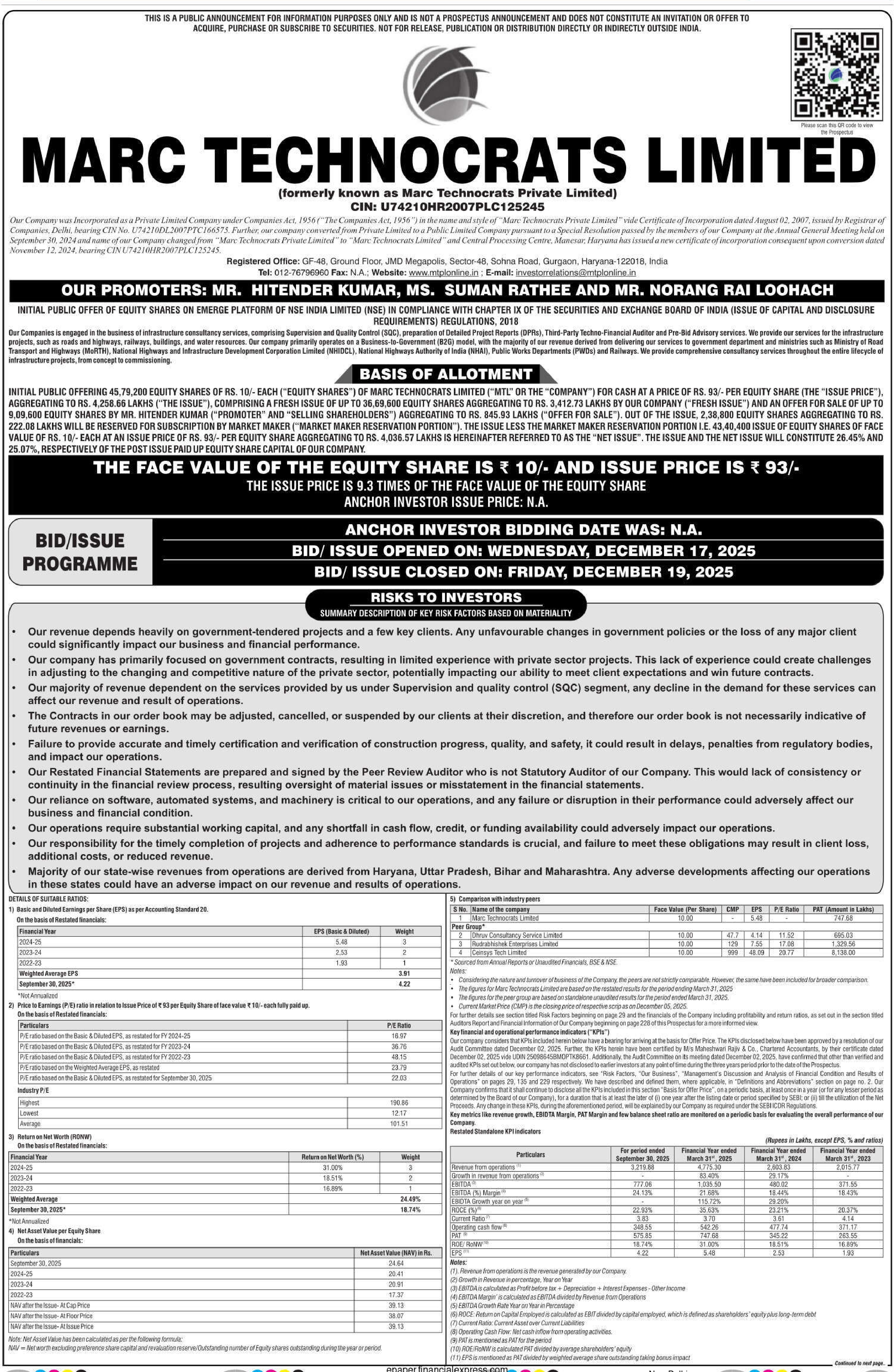 Growing Project Execution Capabilities: MARC aims to enhance project execution efficiency through better project management tools, improved internal systems, and optimized asset utilization. This focus supports higher client satisfaction and stronger operating margins. As of September 30, 2024, the company has an order book of ₹24,186.82 lakhs.