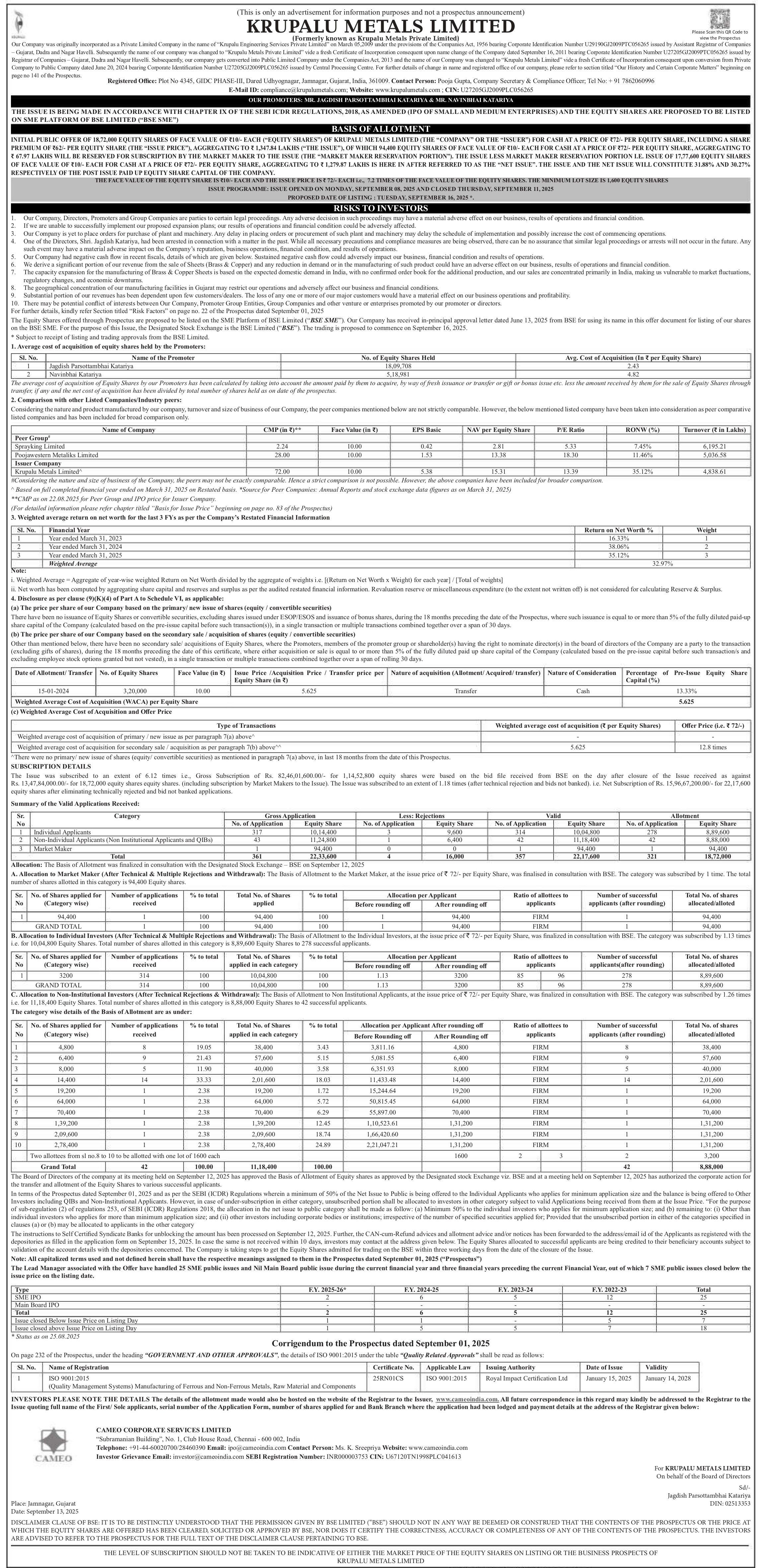 Krupalu Metals Limited | 15.31 | 35.12% | 5.38 |