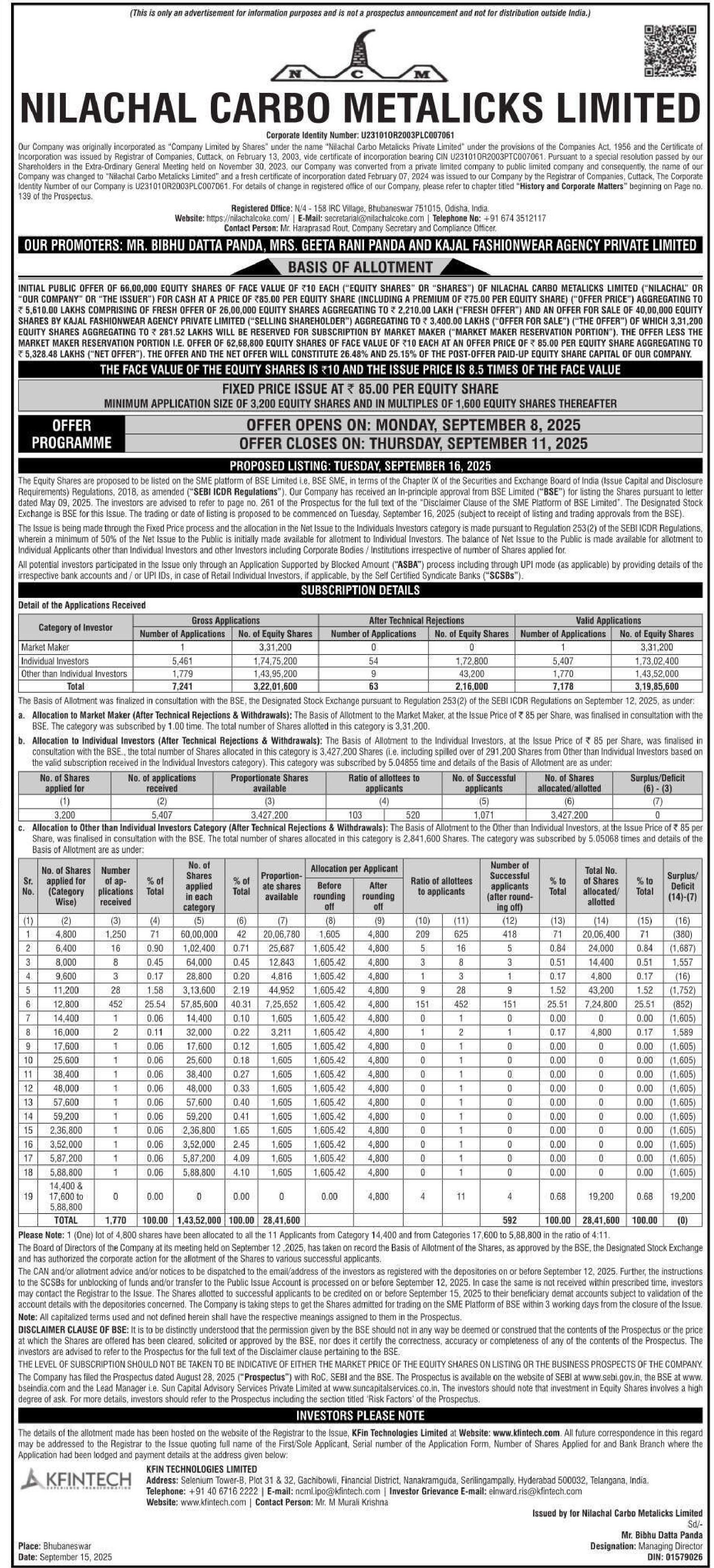Nilachal Carbo Metalicks Lot(s) Distribution