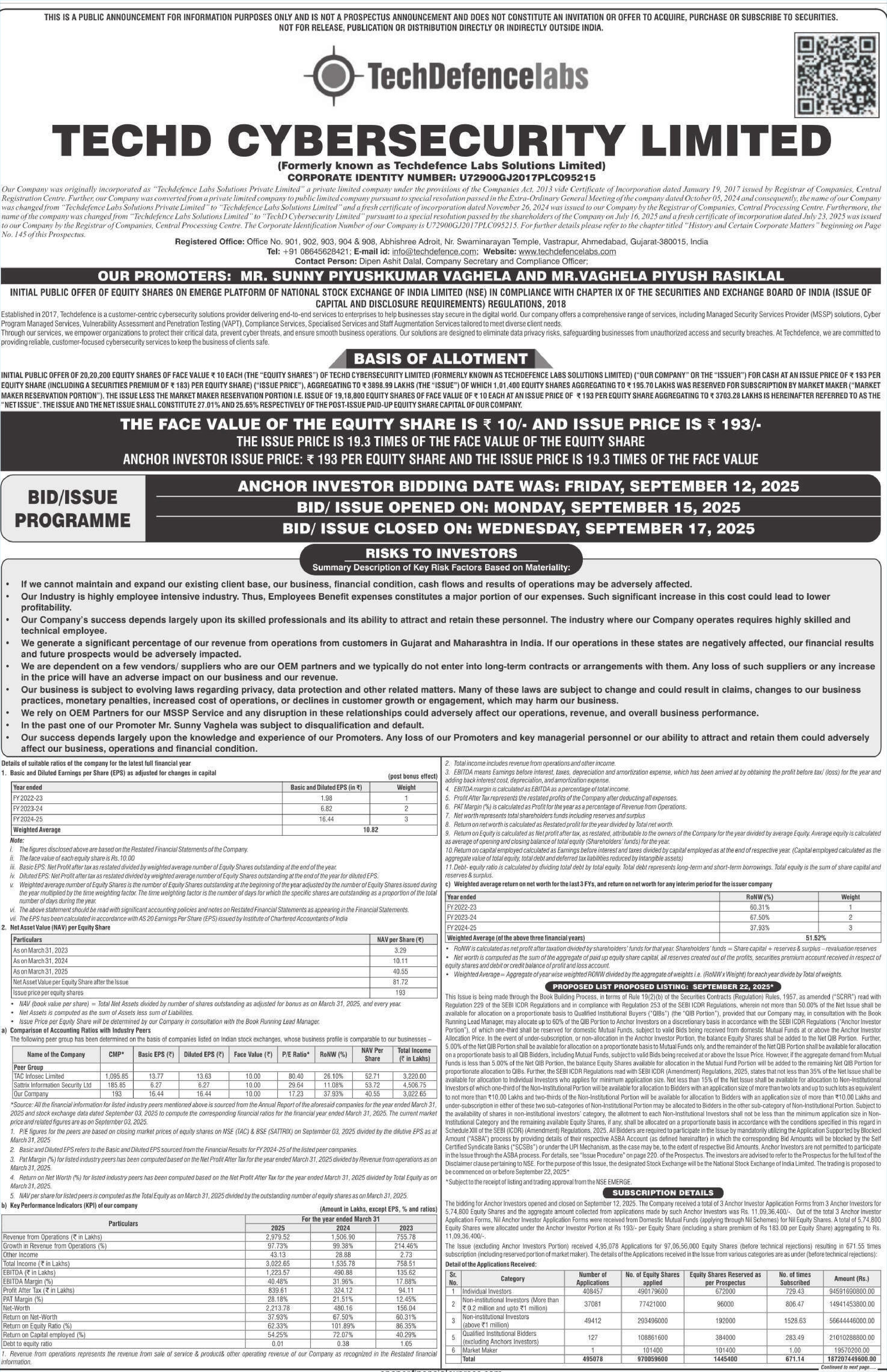 TAC Infosec Limited | 80.4 | 1095.85 | 10 |