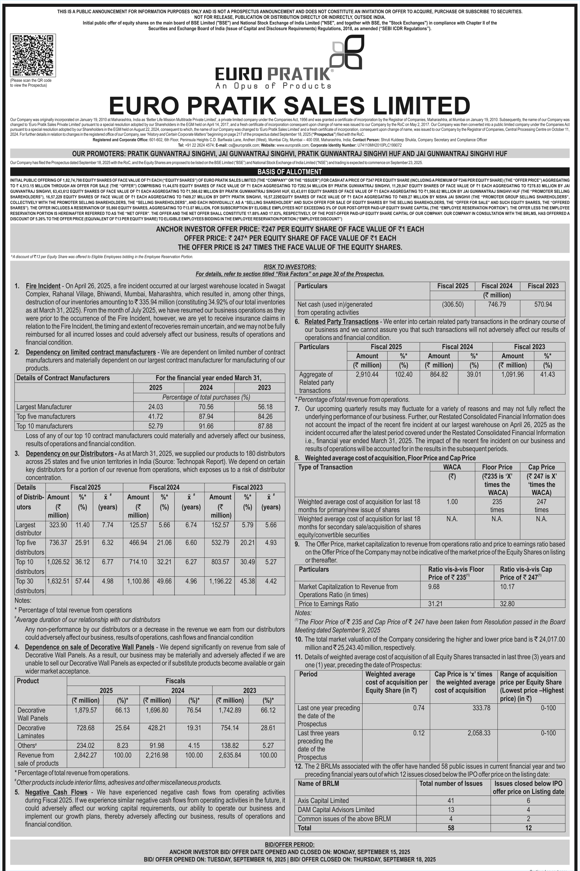 | Euro Pratik Sales Limited | 22.91 | 32.65% | 7.53 |