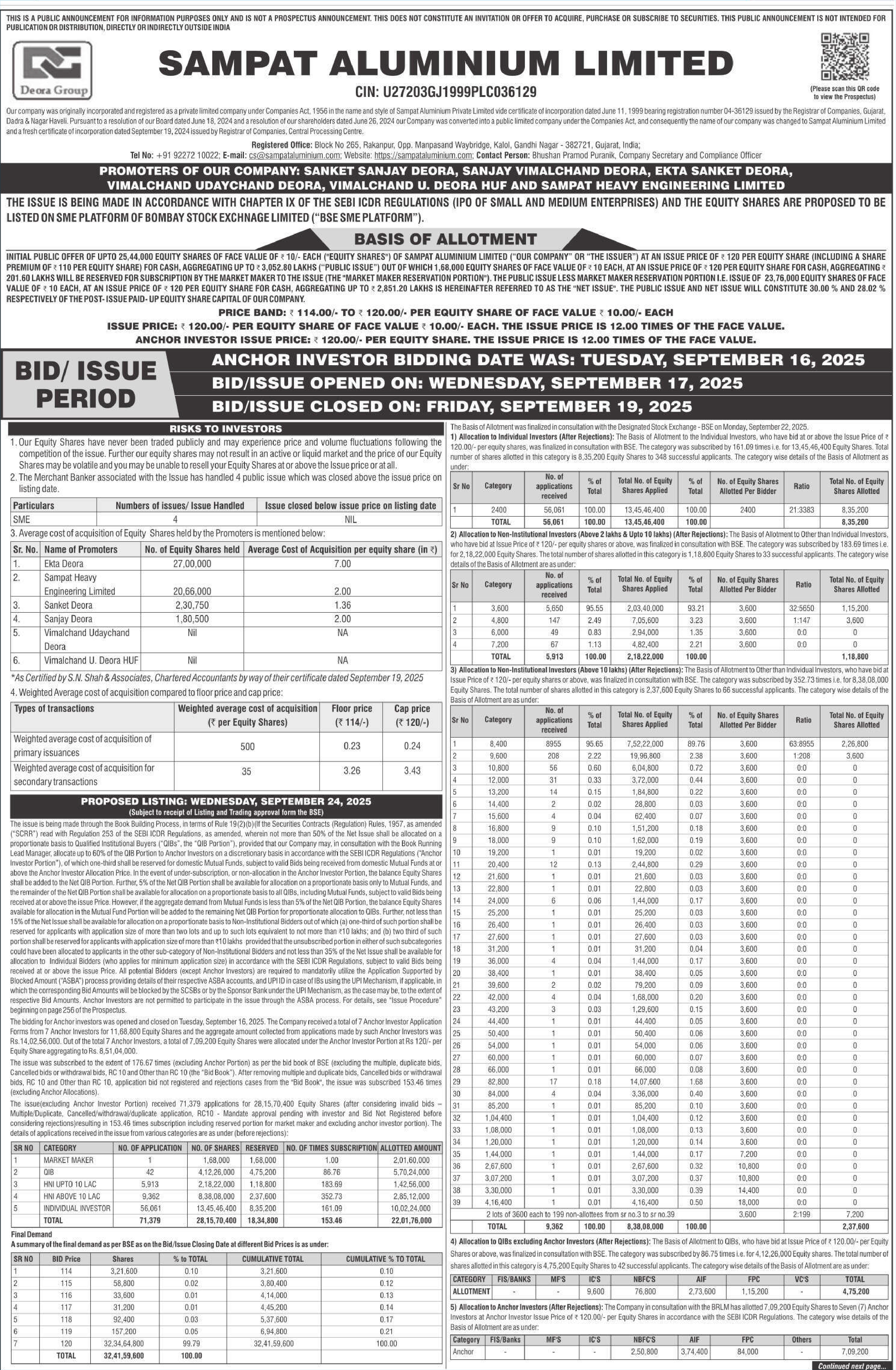 Market Maker's Portion | 168,000 shares (aggregating up to ₹2.02 Cr) |