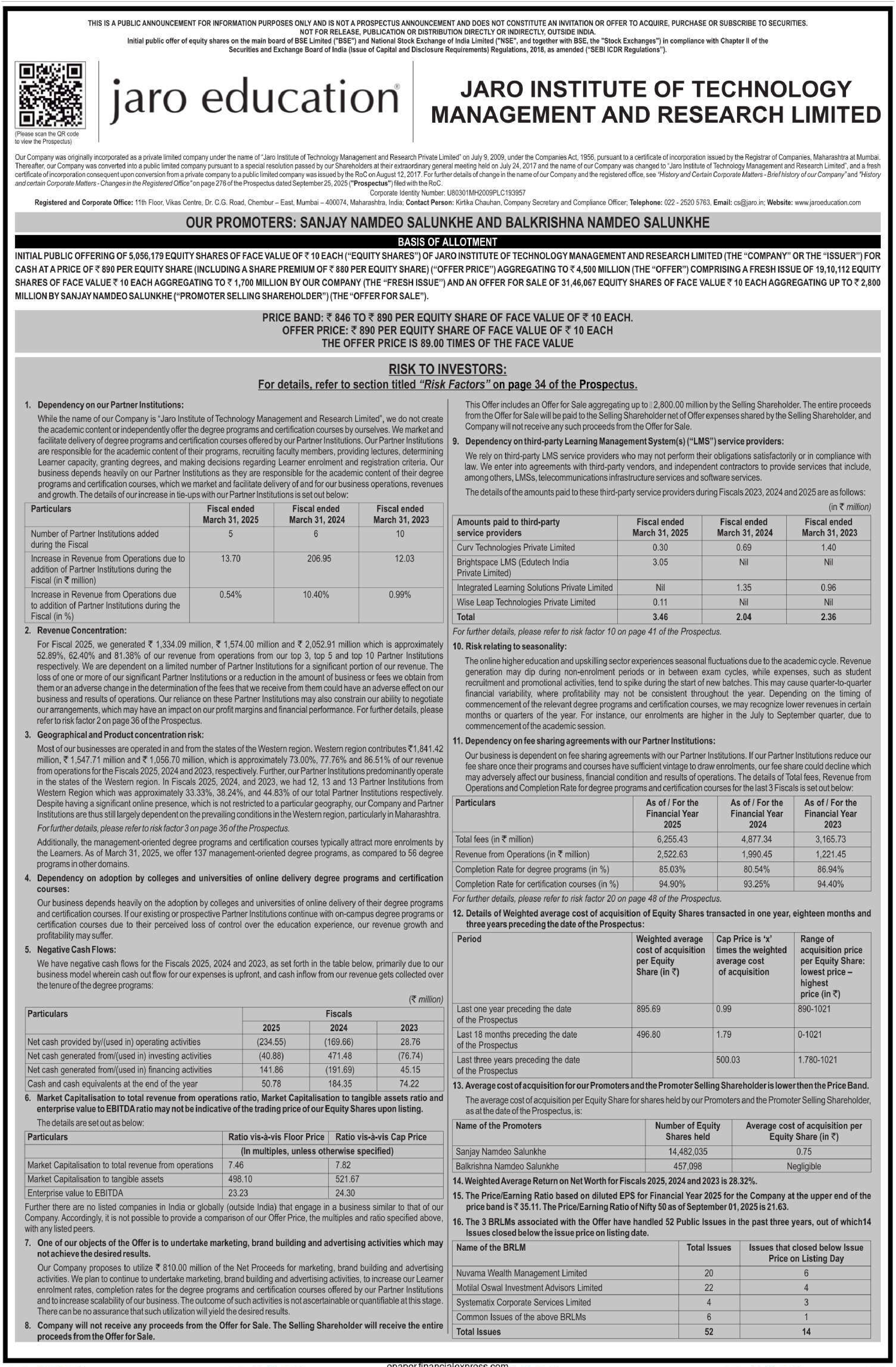 Incorporated in 2009, Jaro Institute of Technology Management and Research Limited (Jaro Education) is an online higher education company with a pan-India presence. The company operates: