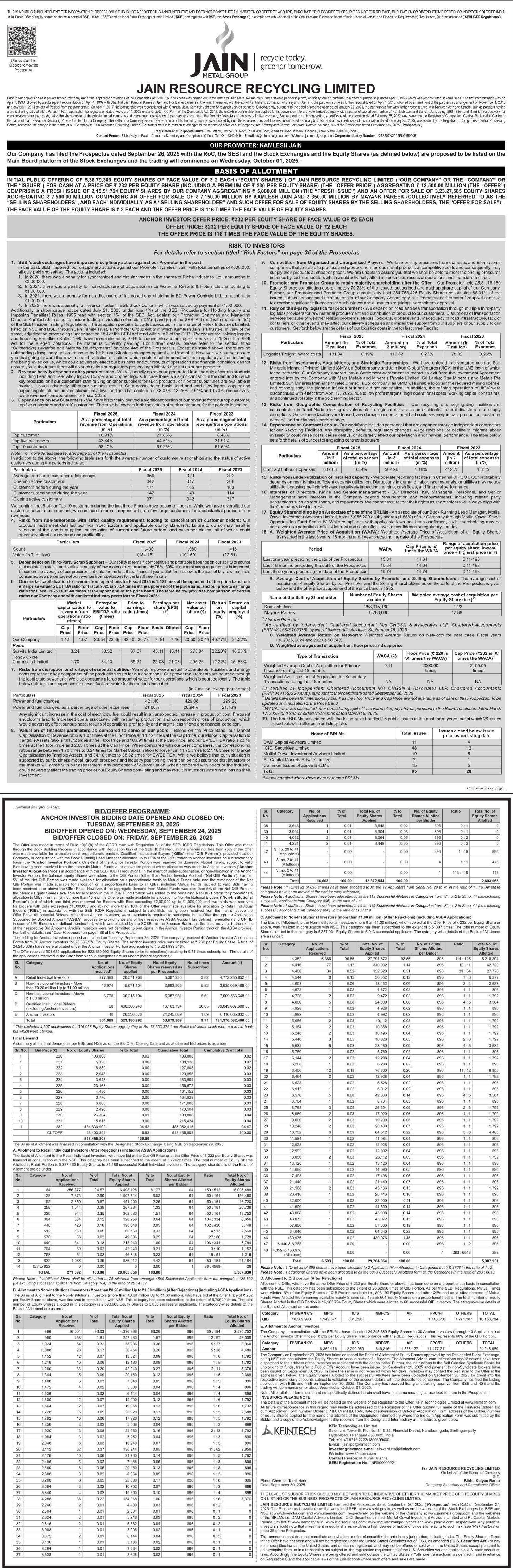 Jain Resource Recycling Latest Announcements