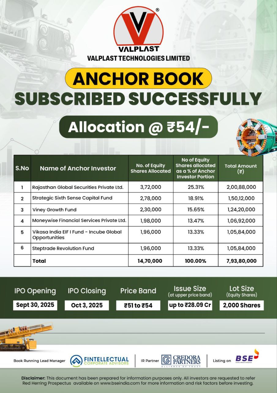 IPO Fund Utilization – Proceeds aimed at machinery purchase (₹4.95 Cr), working capital (₹14 Cr), and general corporate purposes.